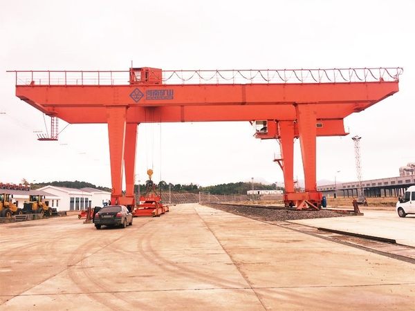 本起重机专用于铁路货场装卸、堆放20、40及45英尺国际标准集装箱。本机配备伸缩式集装箱吊具,用于吊运不同规格集装箱。吊具的开闭锁动作和伸缩由司机在操纵室操作。同时,为了适应不同的集装箱堆放方向和集装箱拖车行走方向,集装箱吊具可设计有旋转机构,可使集装箱任意旋转,以提高装卸效率。